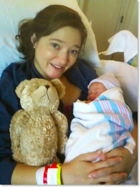 Mother Karrera Irene (“Kari”) Starr Beck holds her newborn daughter, Emerson Irene Beck. Emerson Irene is the granddaughter of Sharon Frances "Sha" Johnson Starr and great-granddaughter of Luke and Shirley Roach Johnson (Uncle Luke and Aunt Shirley). Photo taken 31 August 2010 (day of birth).