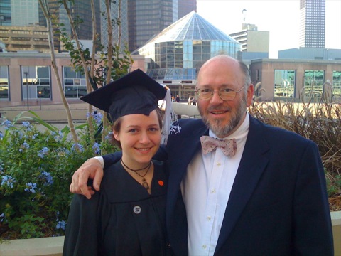 Audubon Charter School in New Orleans. (Sounds like a fantastic school! From the school's website, "Audubon Charter School is the only public elementary school in Louisiana accredited by the French Ministry of National Education in first through fifth grades.") At right Carrie and her father are pictured outside of the Louisiana Superdome at Carrie's graduation. (Click the photo - or here - for a larger image.)